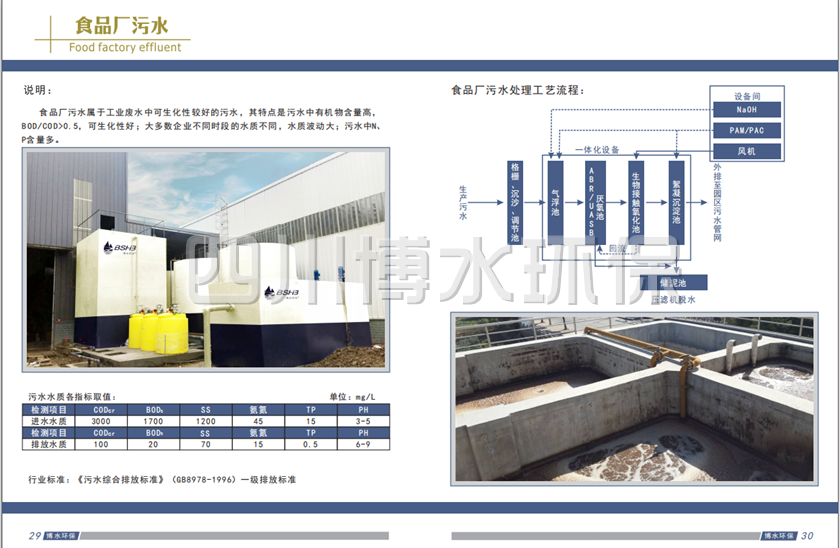 1.4 廢水中的主要污染物為高濃度的碳水化合物、蛋白質(zhì)、脂肪等,還含有少量的食用油、辣椒、食鹽和食品添加劑等;